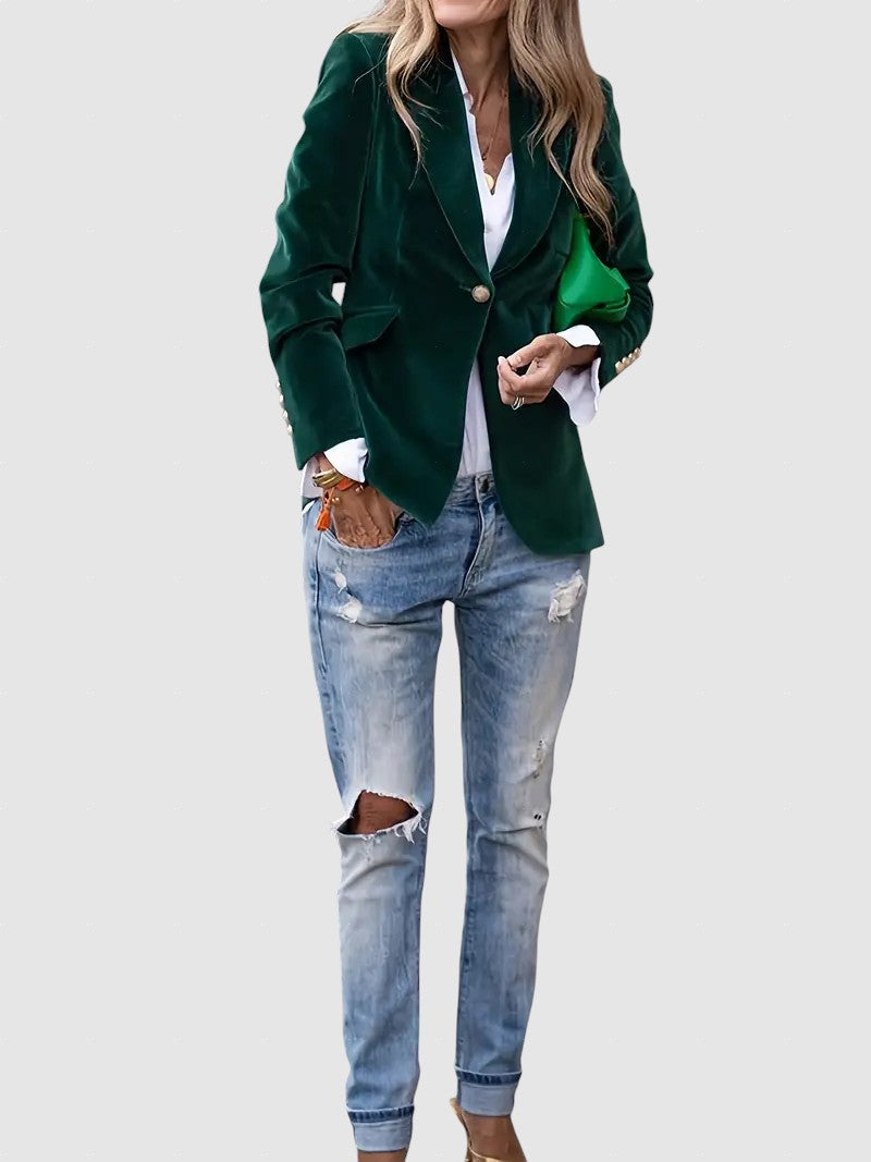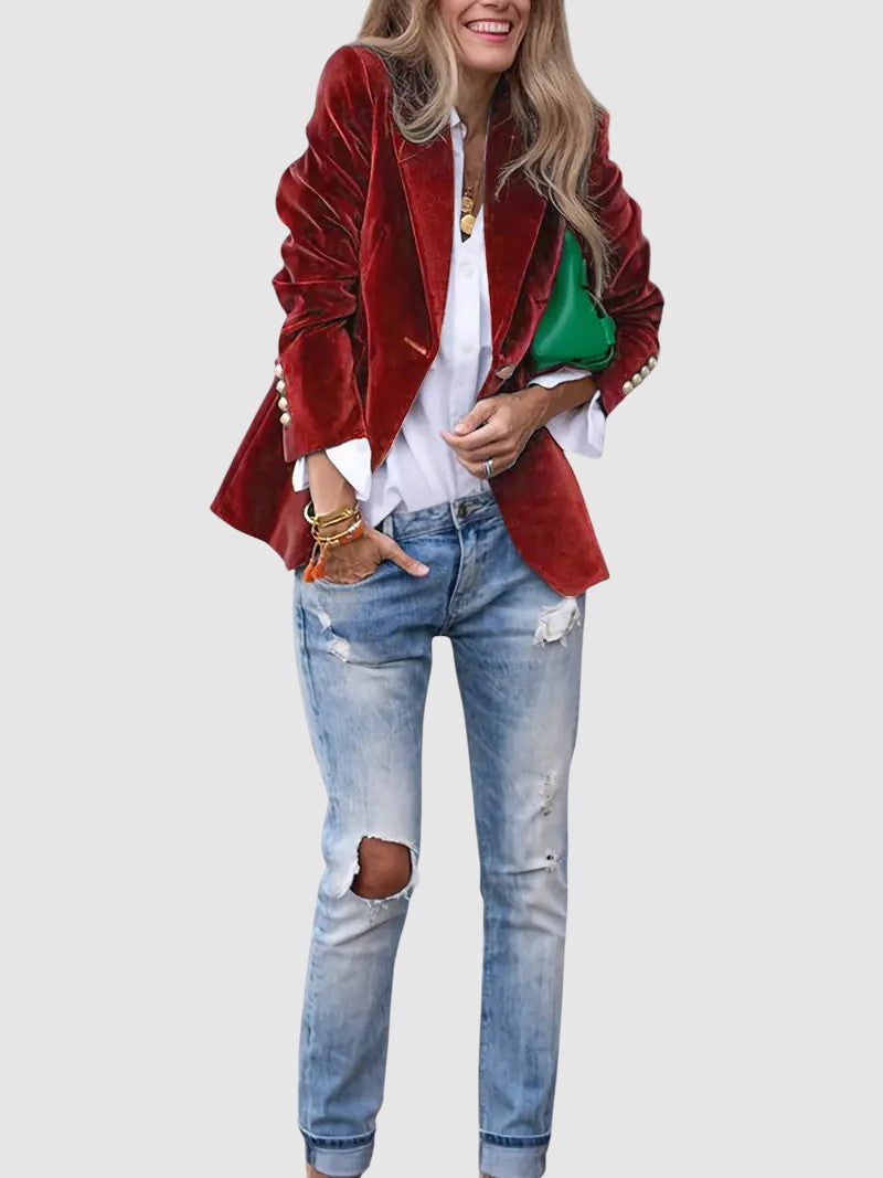 • Луксозно усещане: Изработено от мек, фин кадифе, това палто е толкова елегантно, колкото и изглежда. Освен това е топло и дишащо, идеално за хладни нощи или студени дни.