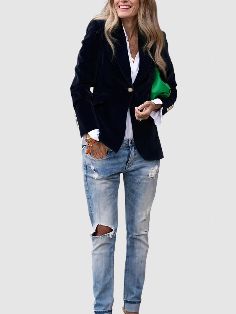 Облечете се с вечна елегантност в това кадифено палто. Създадено за тези, които обичат елегантността с индивидуалност, то съчетава луксозна текстура с ласкателен силует. Независимо дали отивате на шикозна вечеря или искате да добавите специален щрих към ежедневната си визия, това палто ще излъчва стил и увереност с всяка стъпка.