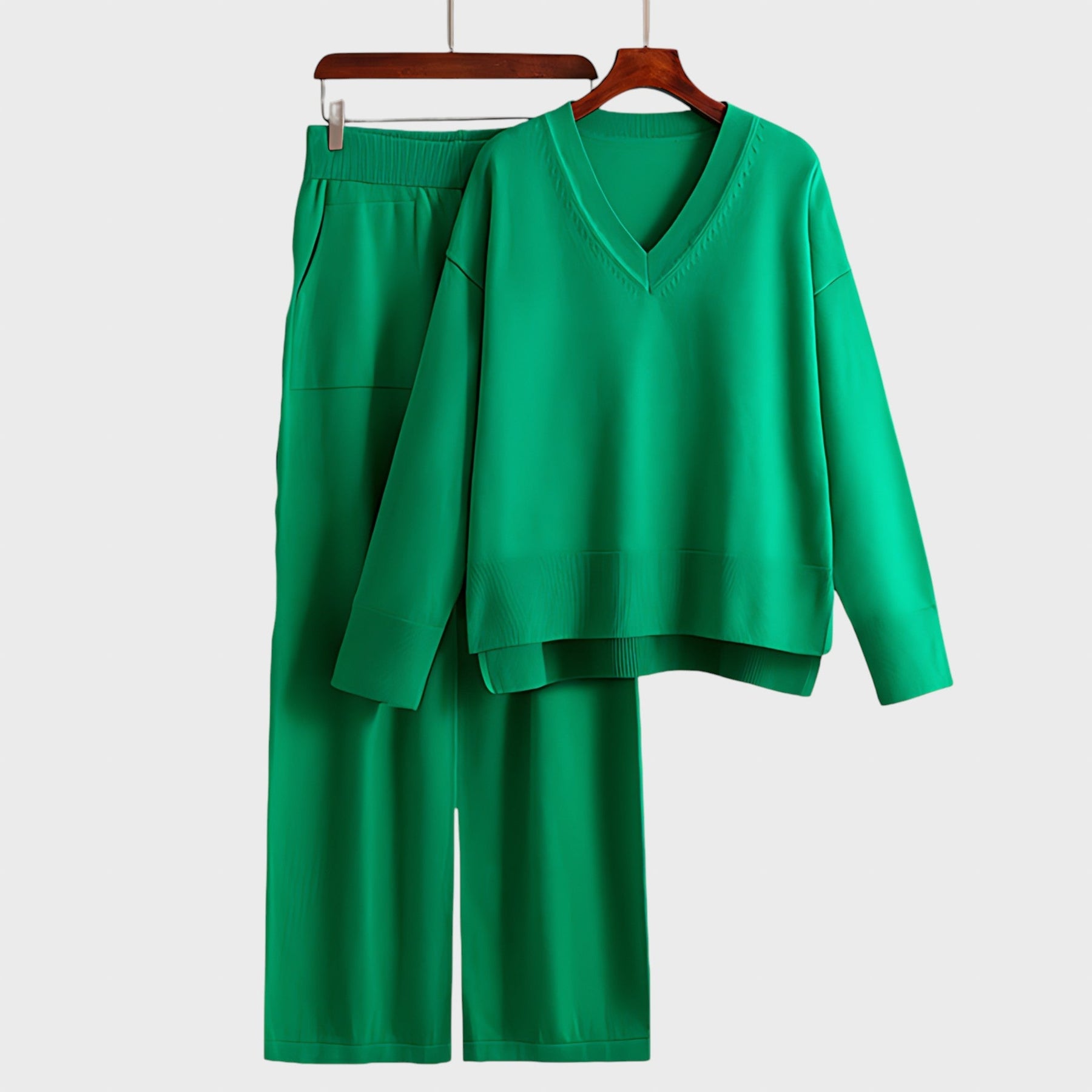 • Комфорт с безупречна кройка: И двете части са изработени от мека плетена материя, осигуряваща максимален комфорт, без да изглеждат небрежно. Висококачествената материя осигурява плавна и структурирана кройка, идеална за изискан вид.