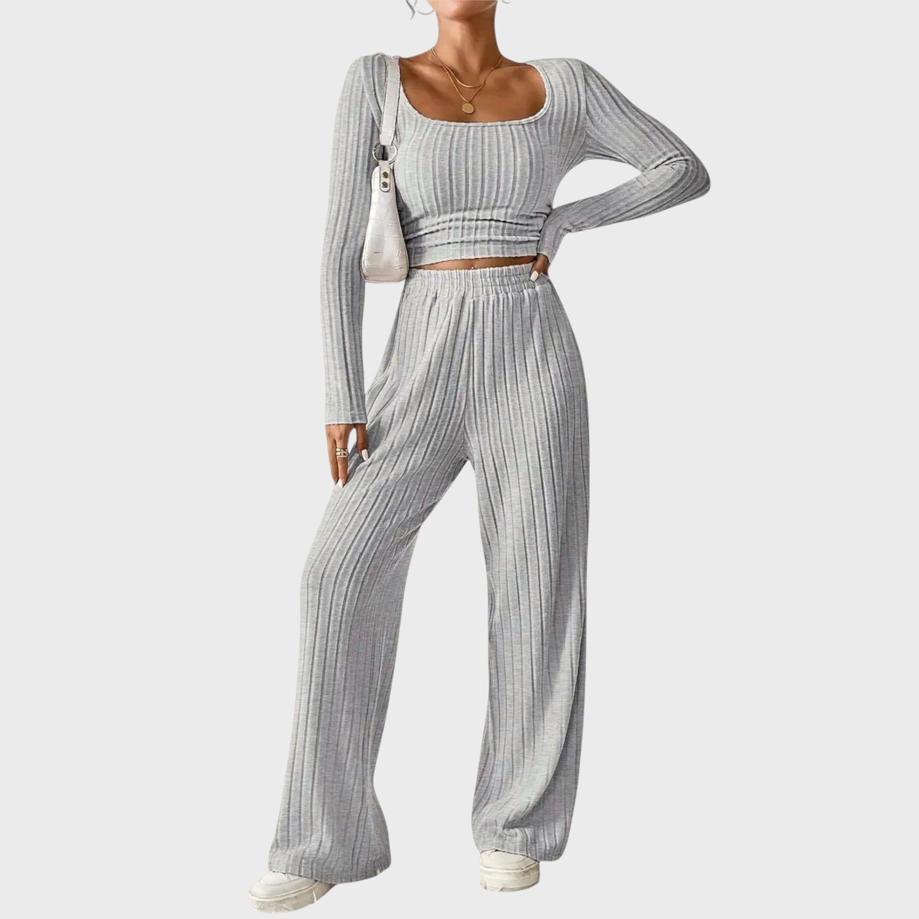 Дамският комплект от нашата есенно/зимна колекция съчетава вечна елегантност с непринудена модерност. Този комплект от две части е задължителен за модните жени, които ценят комфорта и стила.