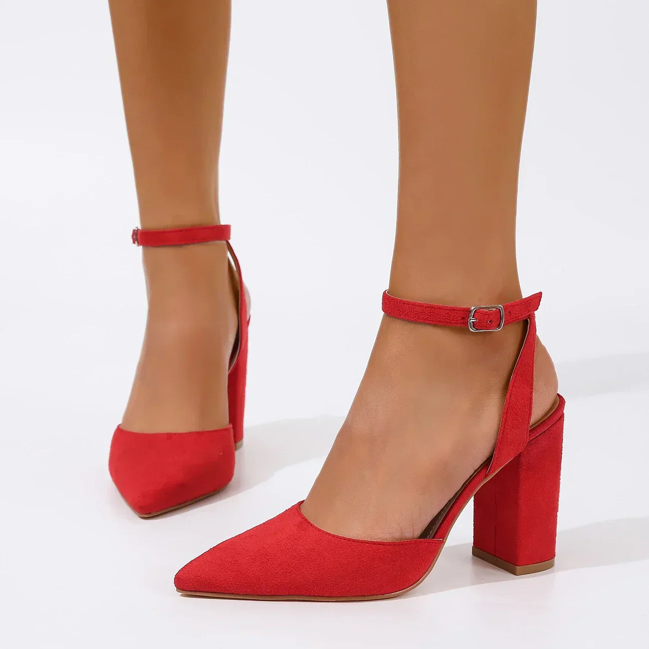 Тези обувки на висок ток съчетават класическа, женствена форма с модерен, здрав дизайн . Изисканият им стил е подчертан от кадифената текстура на материала и съвременната форма на тока.