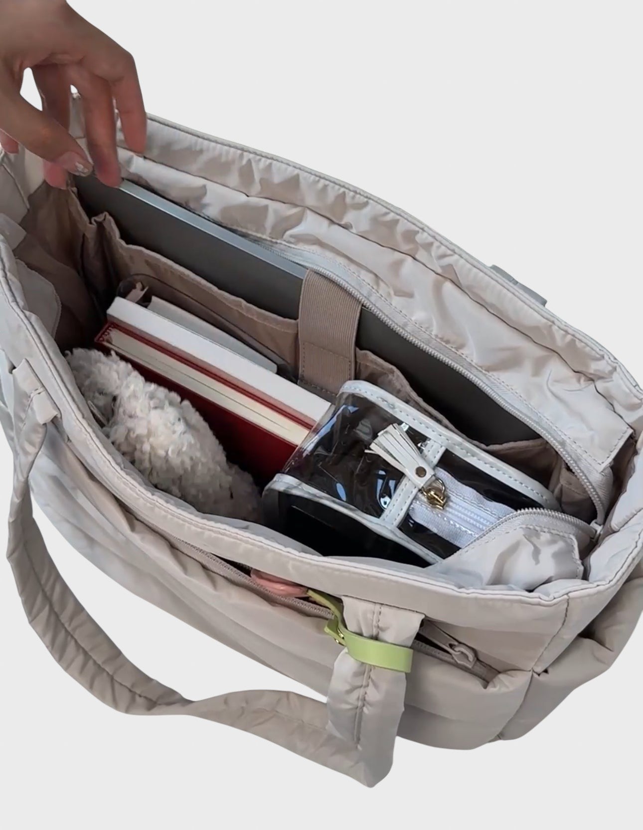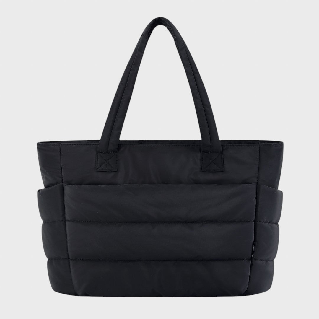 Тази чанта е перфектният спътник за всеки ден. С просторно основно отделение, тя има достатъчно място за всичко: от вашия лаптоп и книги до вашите ежедневни вещи. Модерният капитониран модел я прави не само практична, но и много стилна.