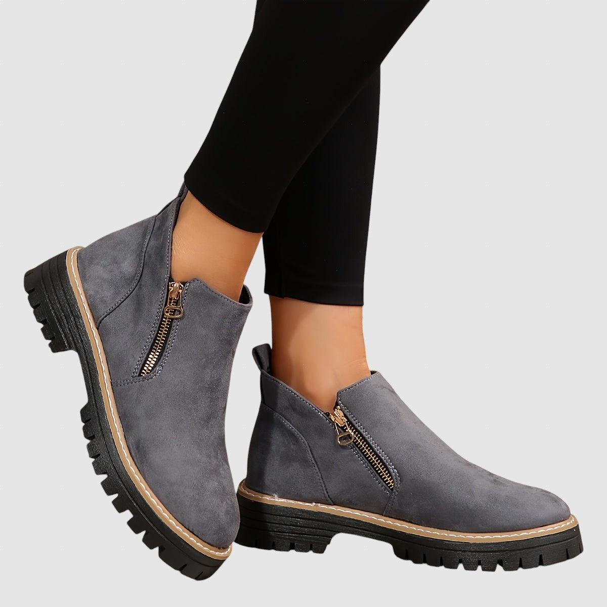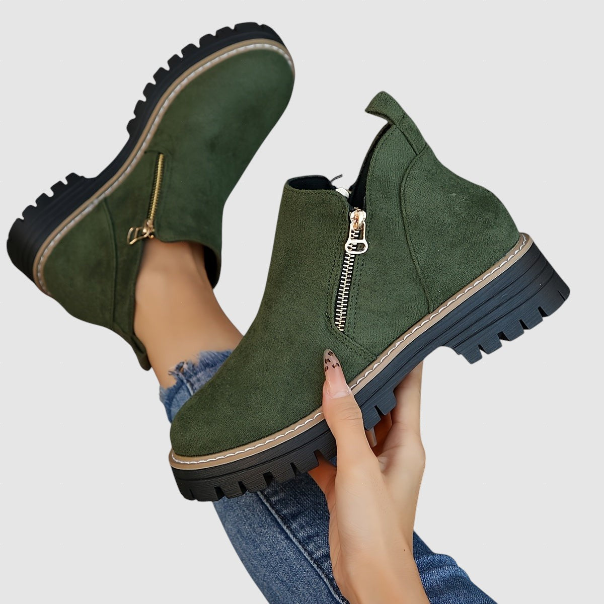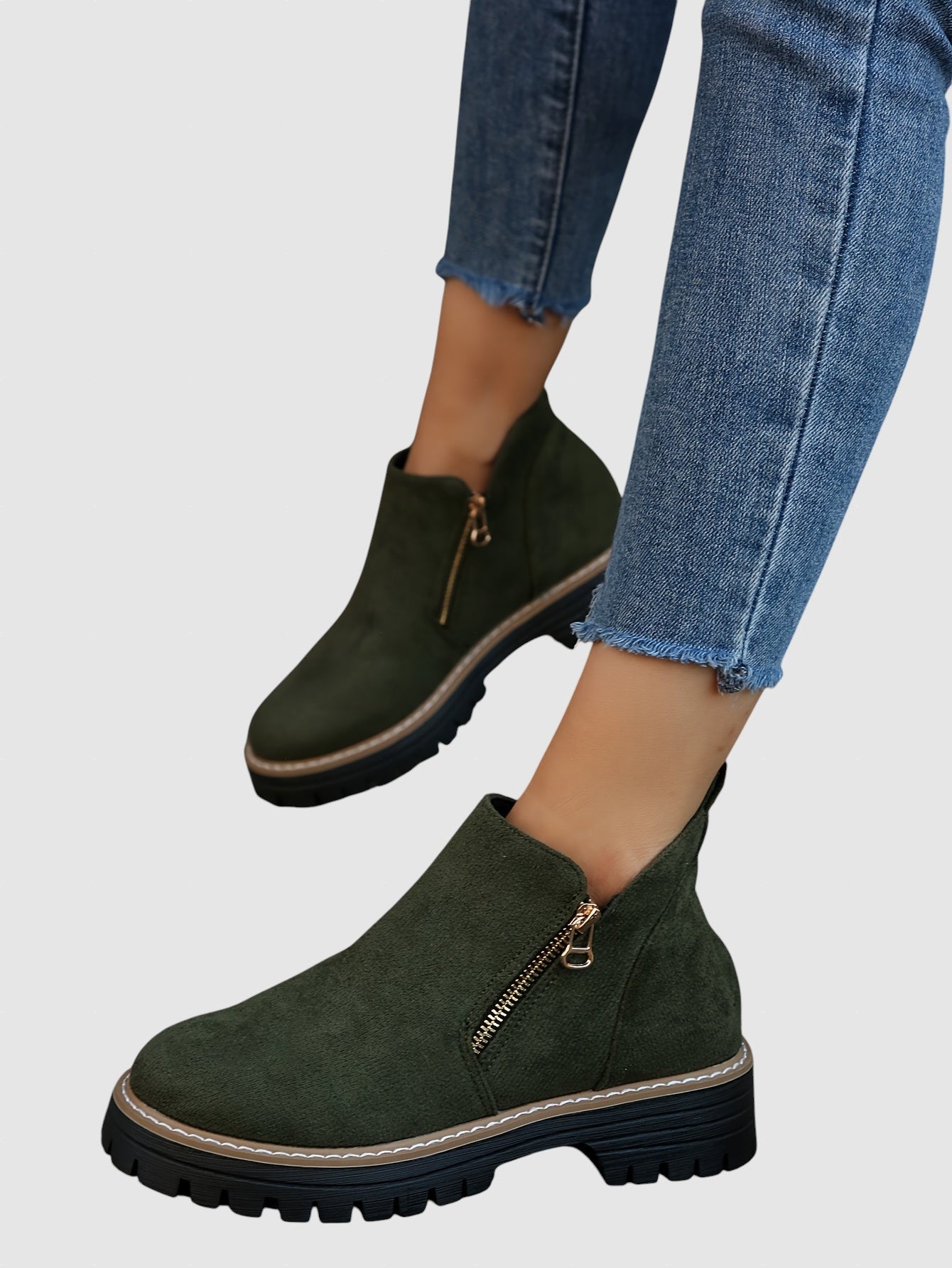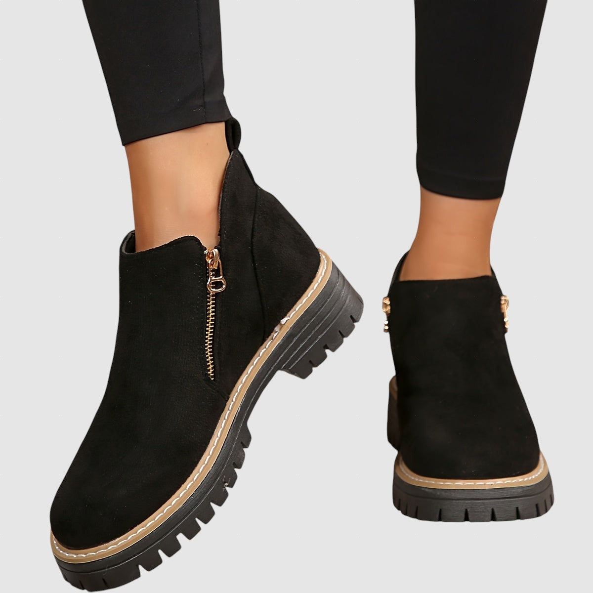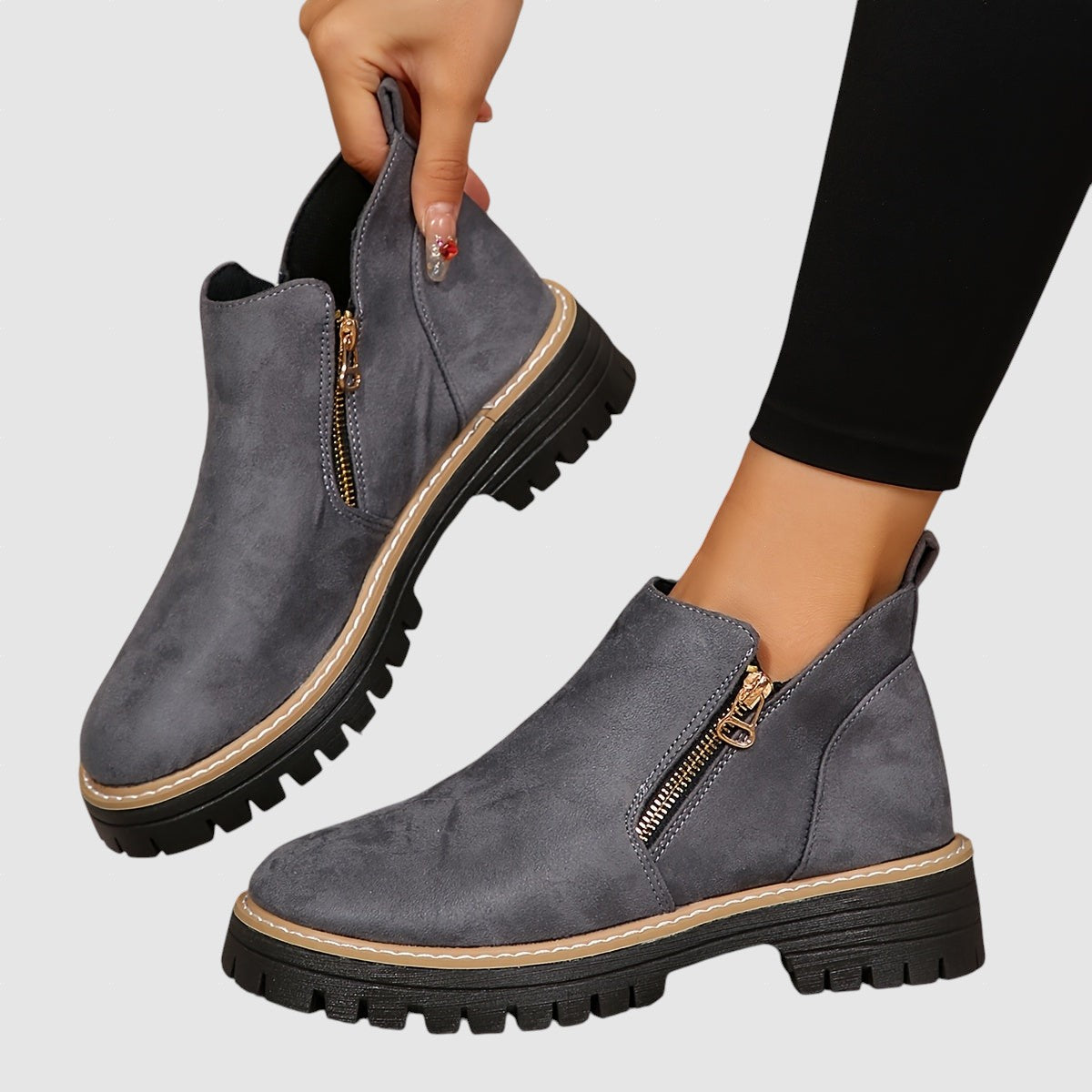 Тези ботуши съчетават модерен дизайн с идеален комфорт. Здравата подметка осигурява стабилност и сцепление при всякакви метеорологични условия. Благодарение на практичния страничен цип, ботушите са лесни за обуване и събуване. Идеални за ежедневно носене.