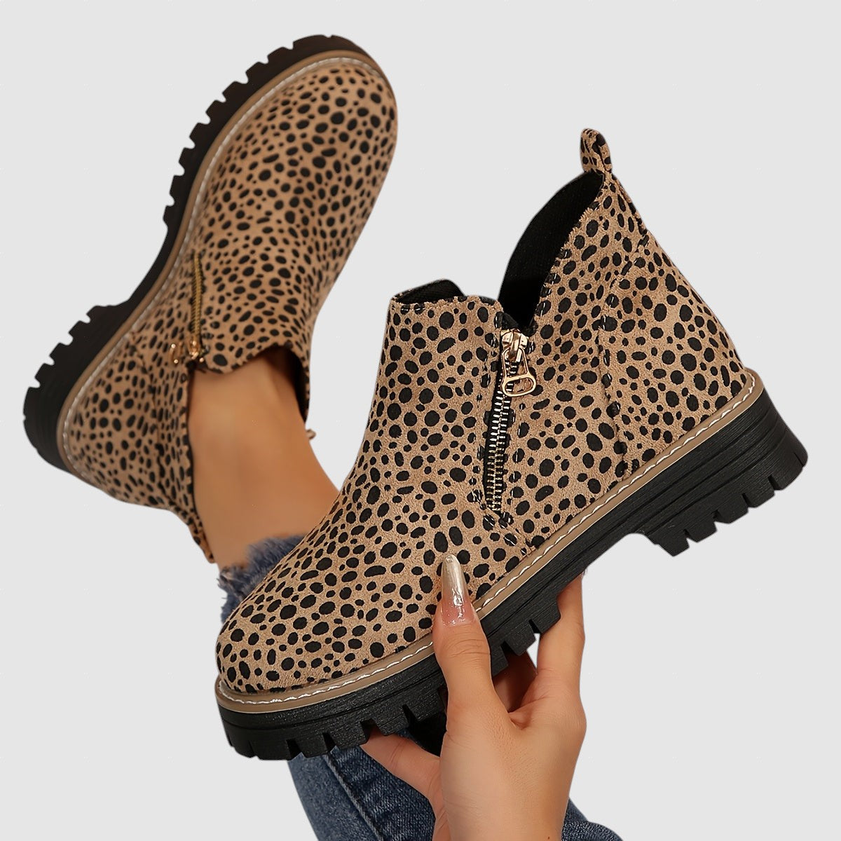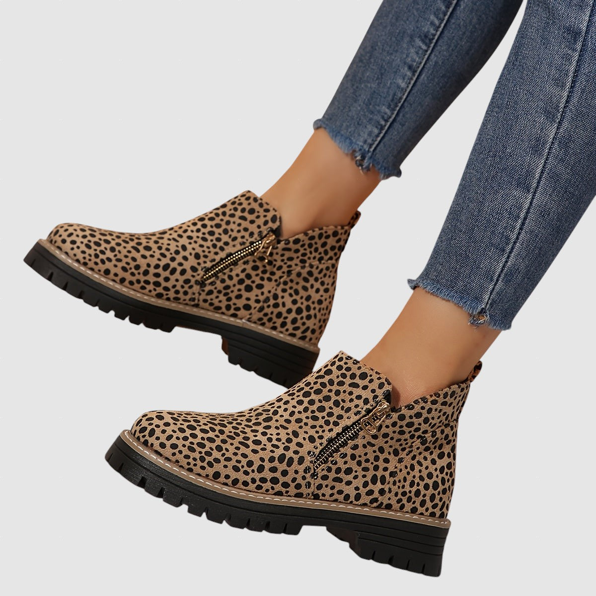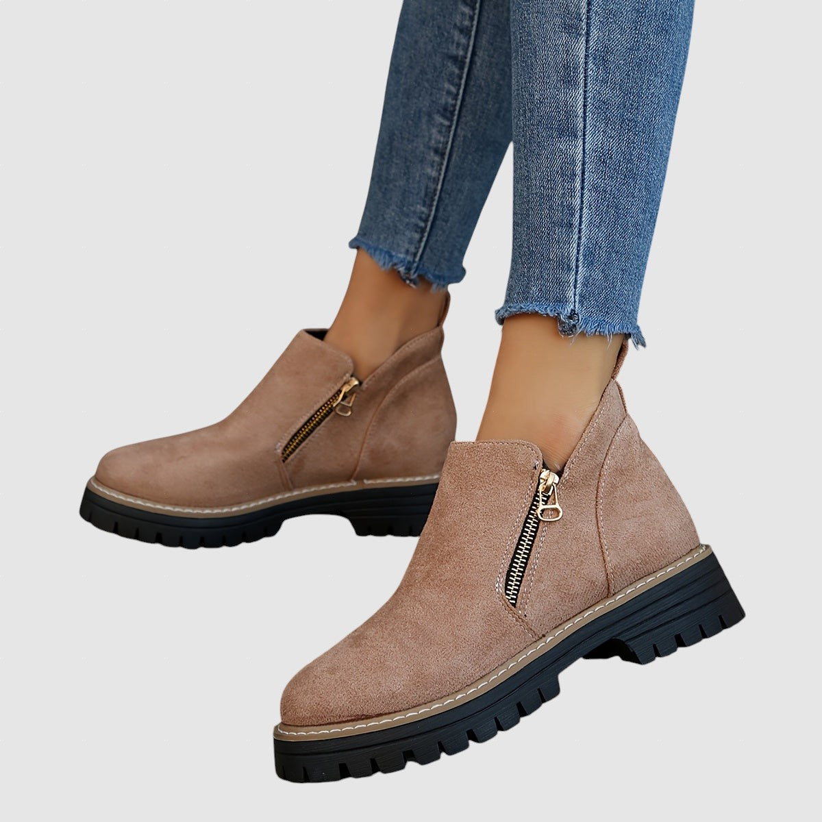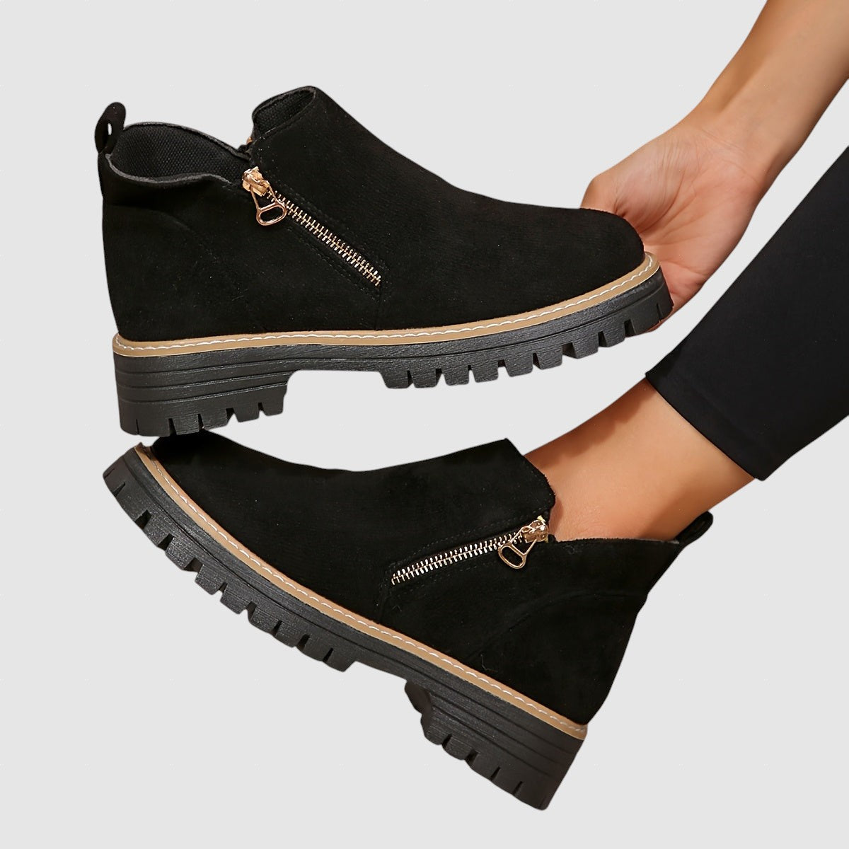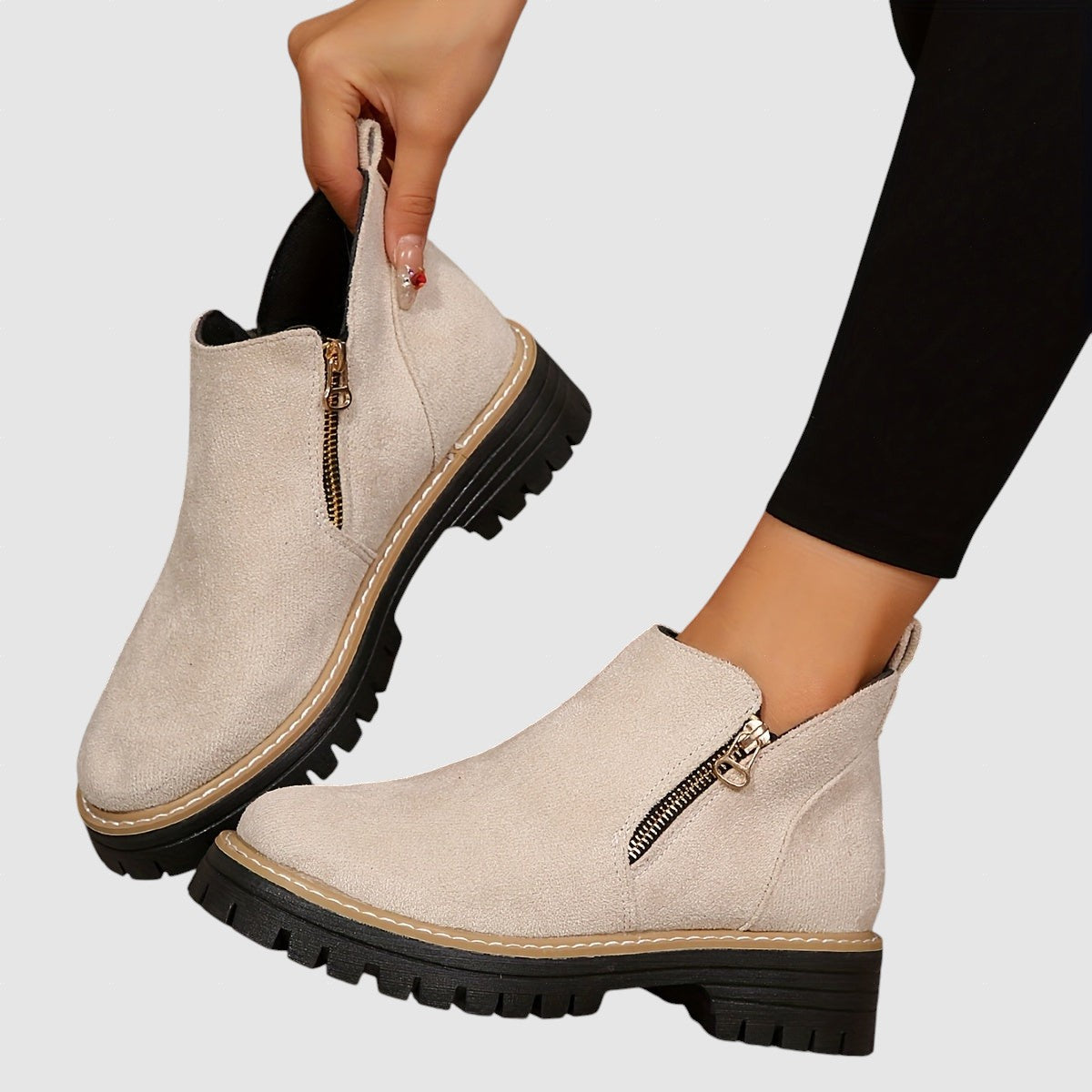 Тези ботуши съчетават модерен дизайн с идеален комфорт. Здравата подметка осигурява стабилност и сцепление при всякакви метеорологични условия. Благодарение на практичния страничен цип, ботушите са лесни за обуване и събуване. Идеални за ежедневно носене.