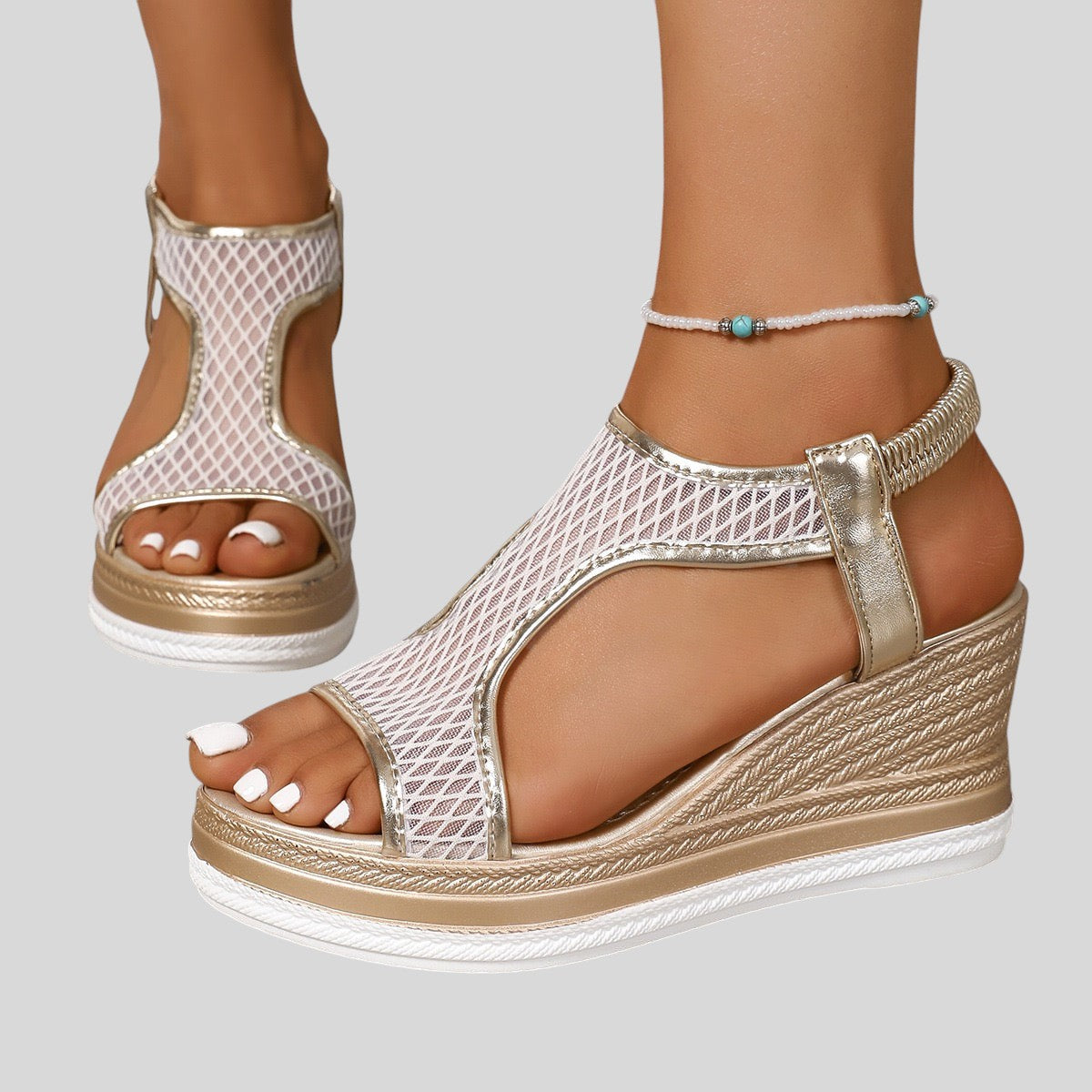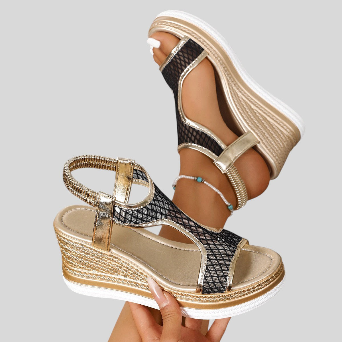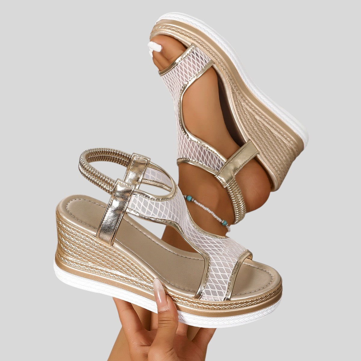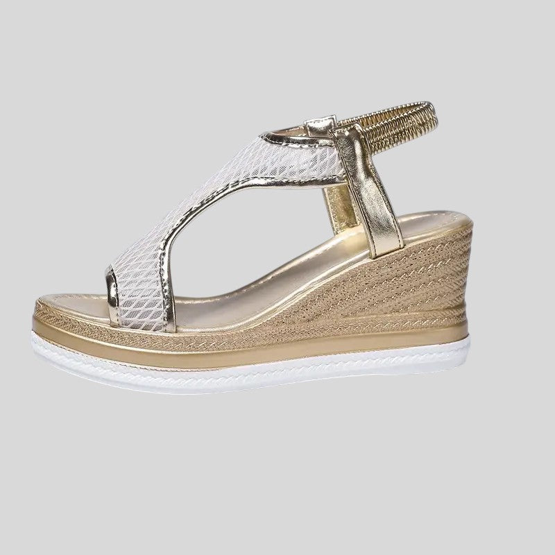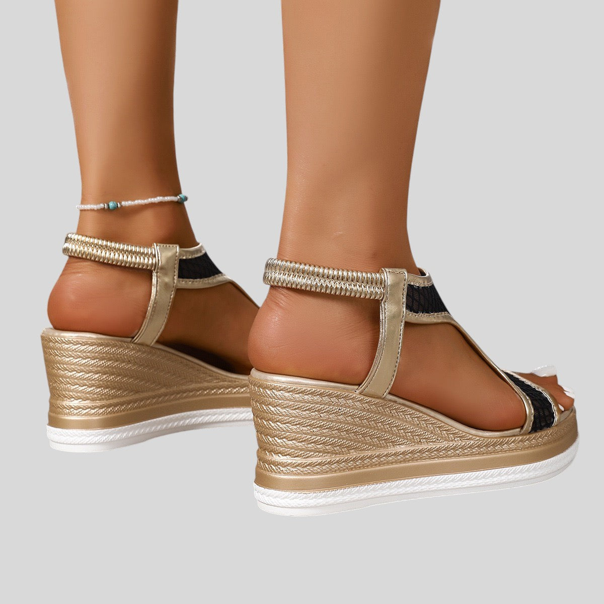 Открийте перфектната комбинация от класически стил и комфорт с нашите елегантни ортопедични сандали на танкетка. Проектирани да осигурят най-доброто за вашите крака, тези сандали са идеални за всеки повод, добавяйки нотка изтънченост и увереност към всяка визия, от ежедневно носене до елегантни вечерни събития.