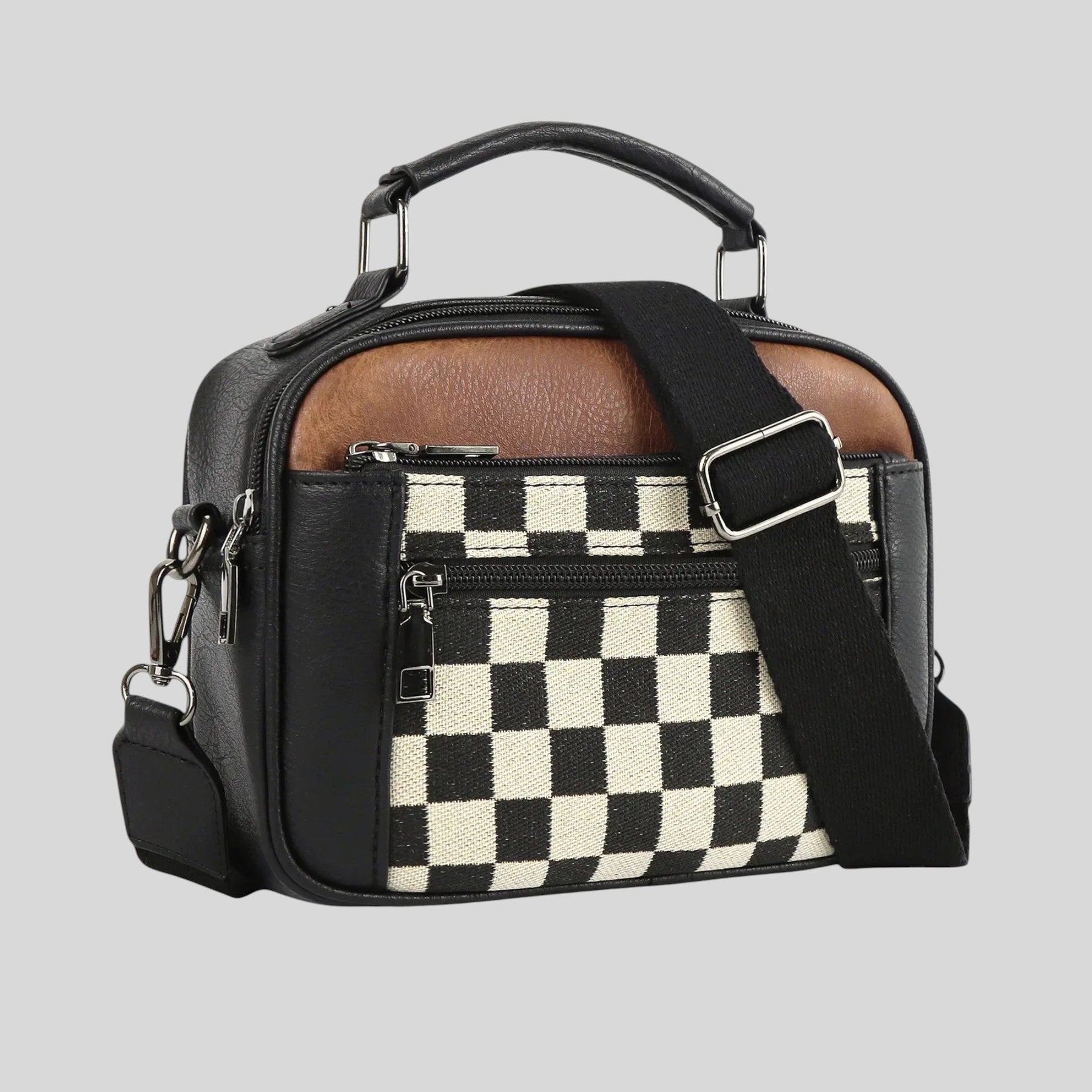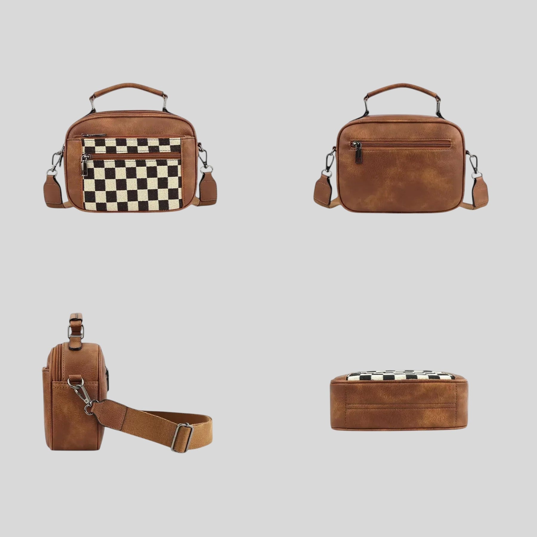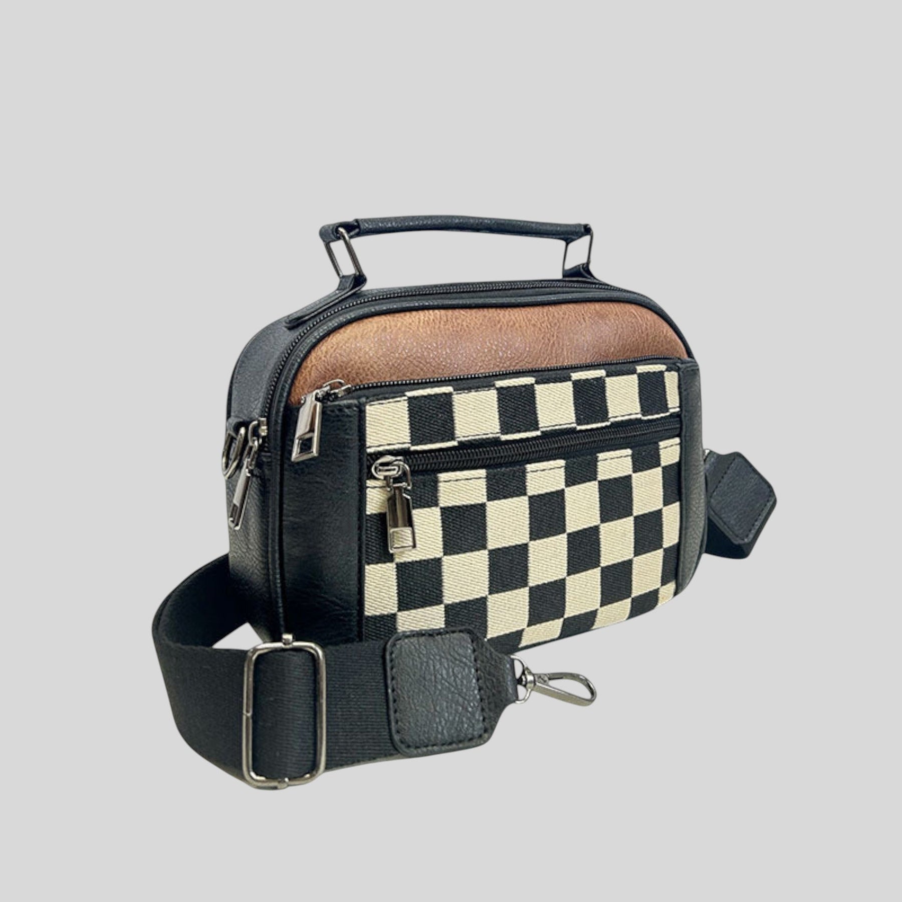Този практичен и стилен куфар е идеалният спътник за вашето ежедневие. С модерен дизайн и отличителен кариран мотив отпред, той добавя нотка индивидуалност към всяка визия. Регулируемата презрамка и просторният интериор осигуряват функционалността, от която се нуждаете.